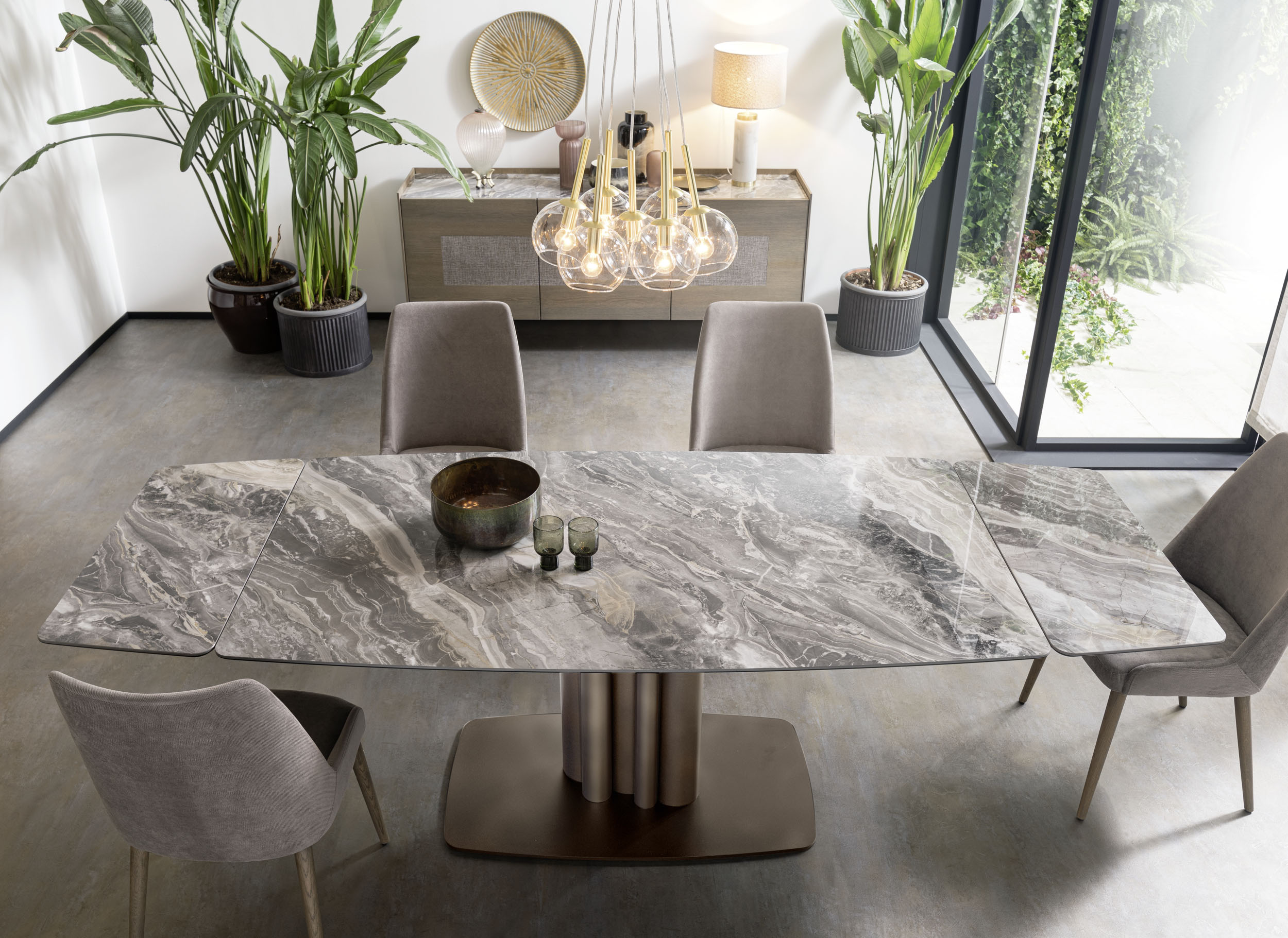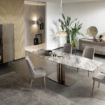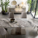 La mesa Cannes es fruto del lápiz del centro de estilo Altacorte. Intrépida e imponente a pesar del pequeño tamaño de la base, la mesa Cannes se reconoce por las líneas geométricas esenciales de la base de metal, enriquecidas por un refinado motivo de tubo de órgano que se puede personalizar con acabados cepillados o lacados a mano. El robusto soporte crea un contraste equilibrado y original tanto con las encimeras de madera maciza como con las de cerámica. El efecto es una estructura minimalista que resalta la extraordinaria belleza de los materiales y la experta artesanía típica de los productos Made in Italy.