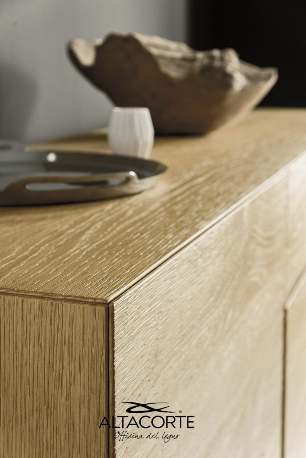 Un aparador con una estructura totalmente de madera de roble, con líneas sofisticadas y una compleja fabricación también en la parte posterior. Es un elemento de éxito asegurado y de valor absoluto para enriquecer vuestros ambientes.