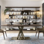 La base Géminis se basa en el concepto de rotación de la tierra alrededor de las estrellas representada por la creación de una espiral. Se alude a la creación de una coexistencia de los diversos elementos, todos idénticos entre sí. Estas geometrías confieren a la mesa una marcada solidez estructural.