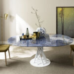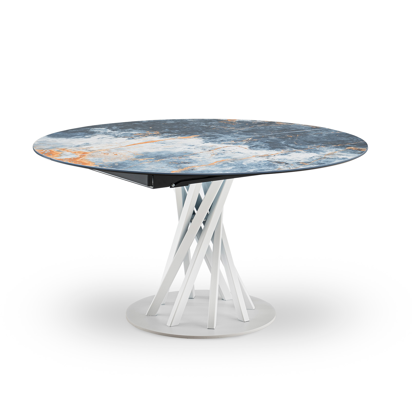 La base Géminis se basa en el concepto de rotación de la tierra alrededor de las estrellas representada por la creación de una espiral. Se alude a la creación de una coexistencia de los diversos elementos, todos idénticos entre sí. Estas geometrías confieren a la mesa una marcada solidez estructural.