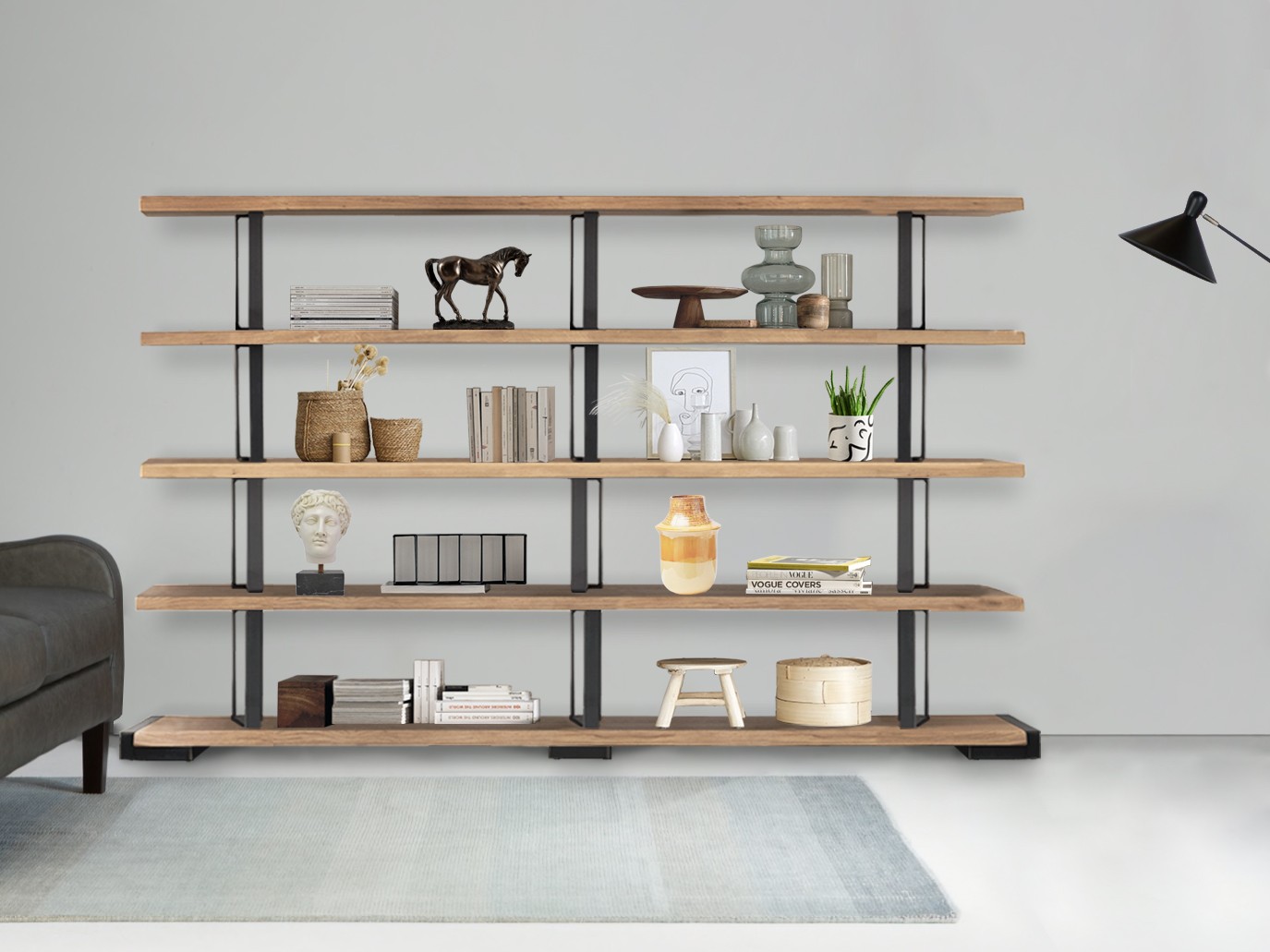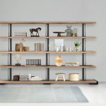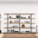 Estantería con esquema fijo de roble macizo con borde irregular y con soportes estructurales de hierro de estilo industrial chic. ¿No encuentras la composición justa para ti? En las tiendas de nuestros distribuidores autorizados podrás personalizarla según tus deseos y exigencias.