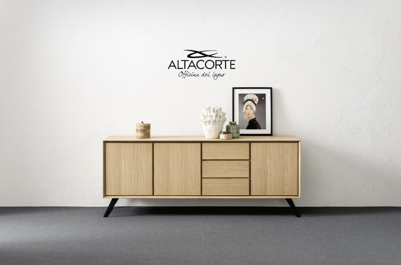 Un clásico del Estilo Altacorte. Un aparador con una estructura totalmente de madera de roble o nogal, realizada por las sabias manos de expertos artesanos. Una línea básica pero nunca trivial, que puede ser ulteriormente valorada por puertas particulares de hormigón.