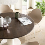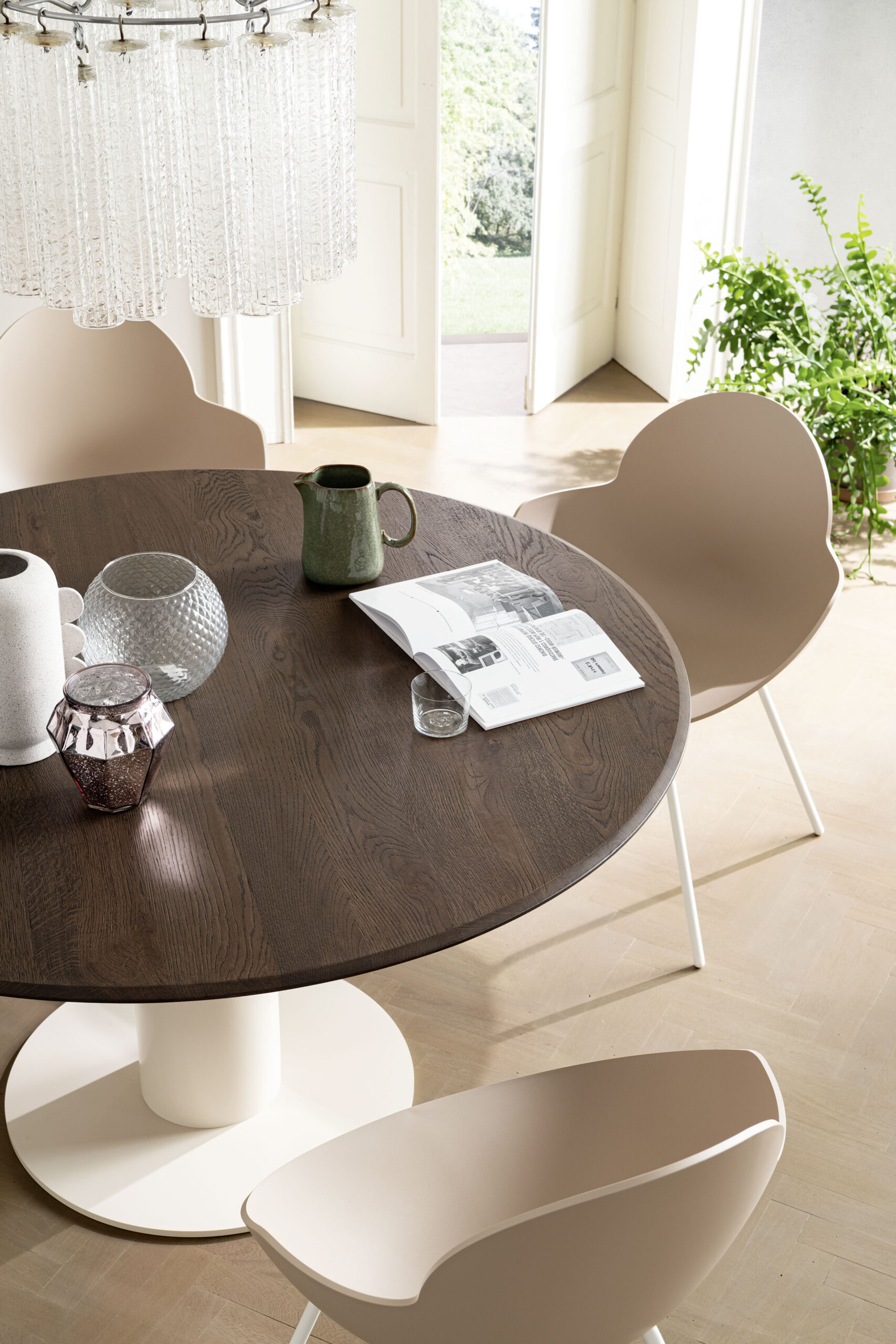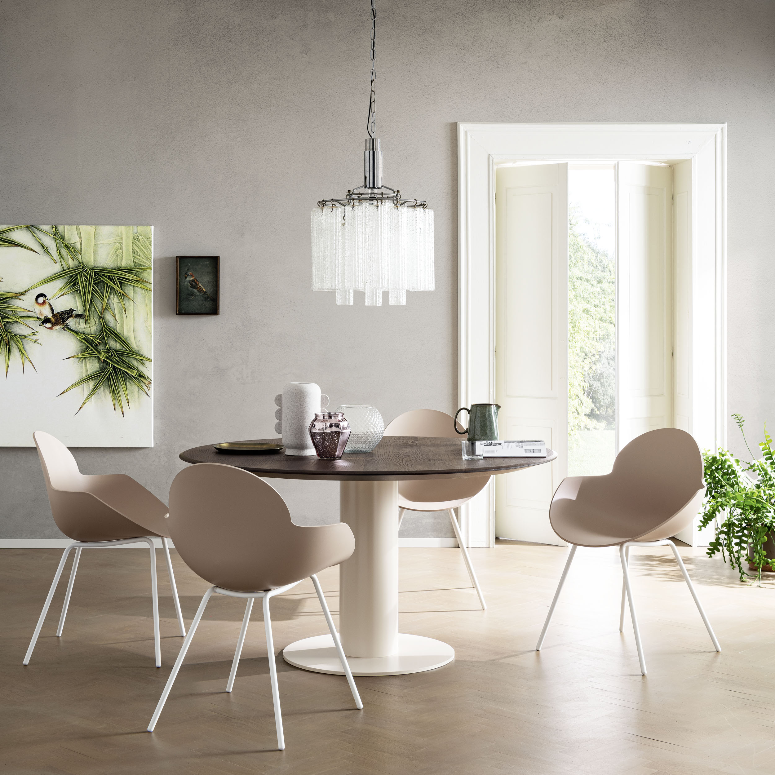 La mesa Orby con su forma circular es la reproducción perfecta del conjunto y su conformación expresa plenitud y armonía para todos aquellos que aman compartir en la mesa. Esta perspectiva se acentúa a medida que la mesa se alarga, adquiriendo una forma elíptica.