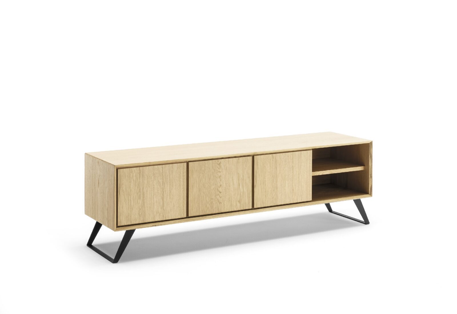 Aparador realizado totalmente en roble o nogal con superficie externa cepillada. Colas de vinílico y resinas ureicas base agua conformes a las normativas UNI-CEE. Colas de vinilo base agua, pinturas acrílicas dos componentes.   Base de madera maciza de roble, de acero recubierto con pintura de polvo u oxidado con acabados acrílicos.