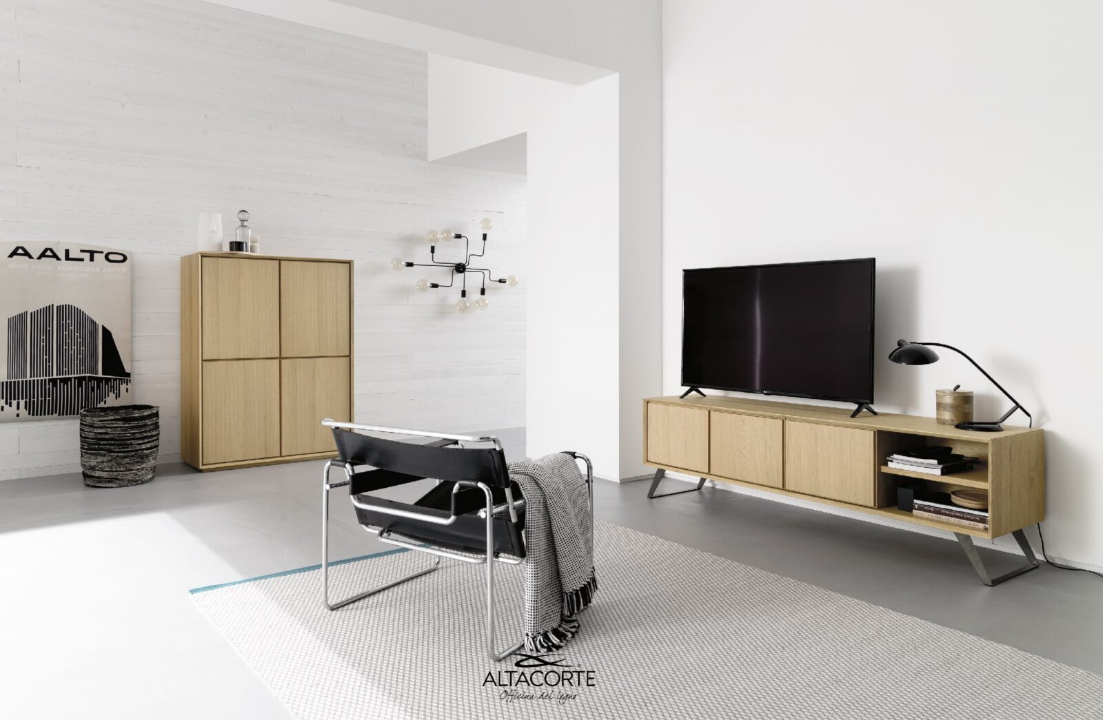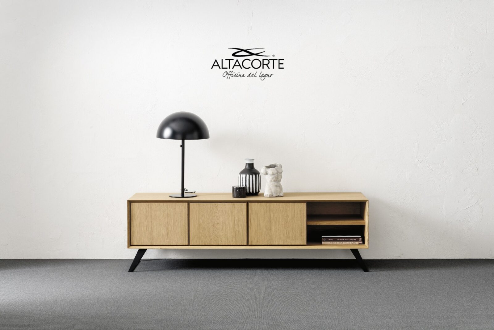 Un clásico del Estilo Altacorte. Un aparador con una estructura totalmente de madera de roble o nogal, realizada por las sabias manos de expertos artesanos. Una línea básica pero nunca trivial, que puede ser ulteriormente valorada por puertas particulares de hormigón.