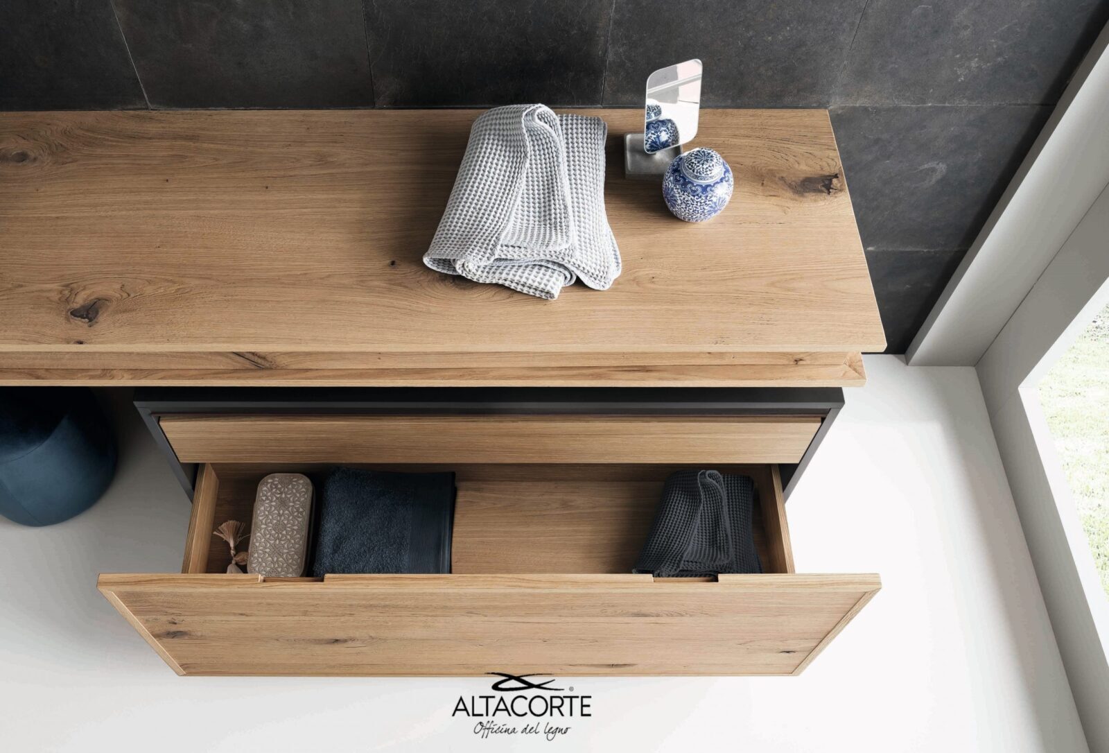 Finiture Scocca Laccato poro aperto / Body finishes Open-pore lacquered finishes Finiture cassetti – ante rovere / oak Drawer – doors finishes  Finiture Scocca Laccato poro aperto / Drawer – doors finishesfinishes Open-pore lacquered finishes Top Laminam / Laminam Top