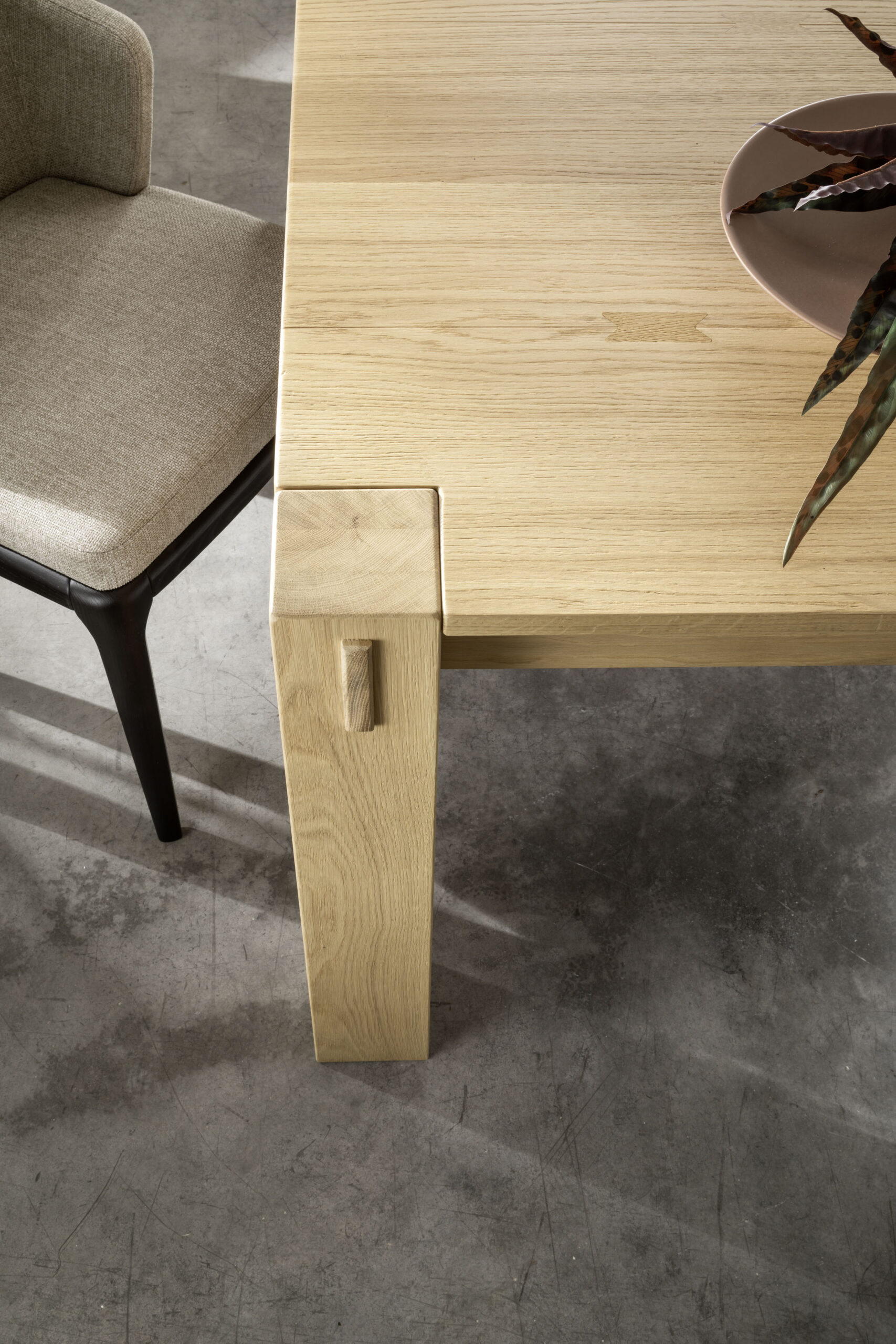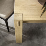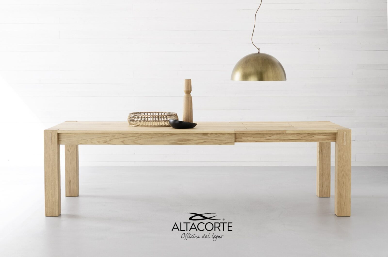 Es la obra de arte de Altacorte. Una mesa de estilo nórdico, esencial y atemporal, cuyas líneas siguen guiando el diseño contemporáneo. Toda la mesa es de madera maciza, enriquecida por insertos en las patas y por mariposas incrustadas en el plano. Los detalles hacen esta mesa perfecta y la perfección no es un simple detalle en una mesa fabricada artesanalmente.
