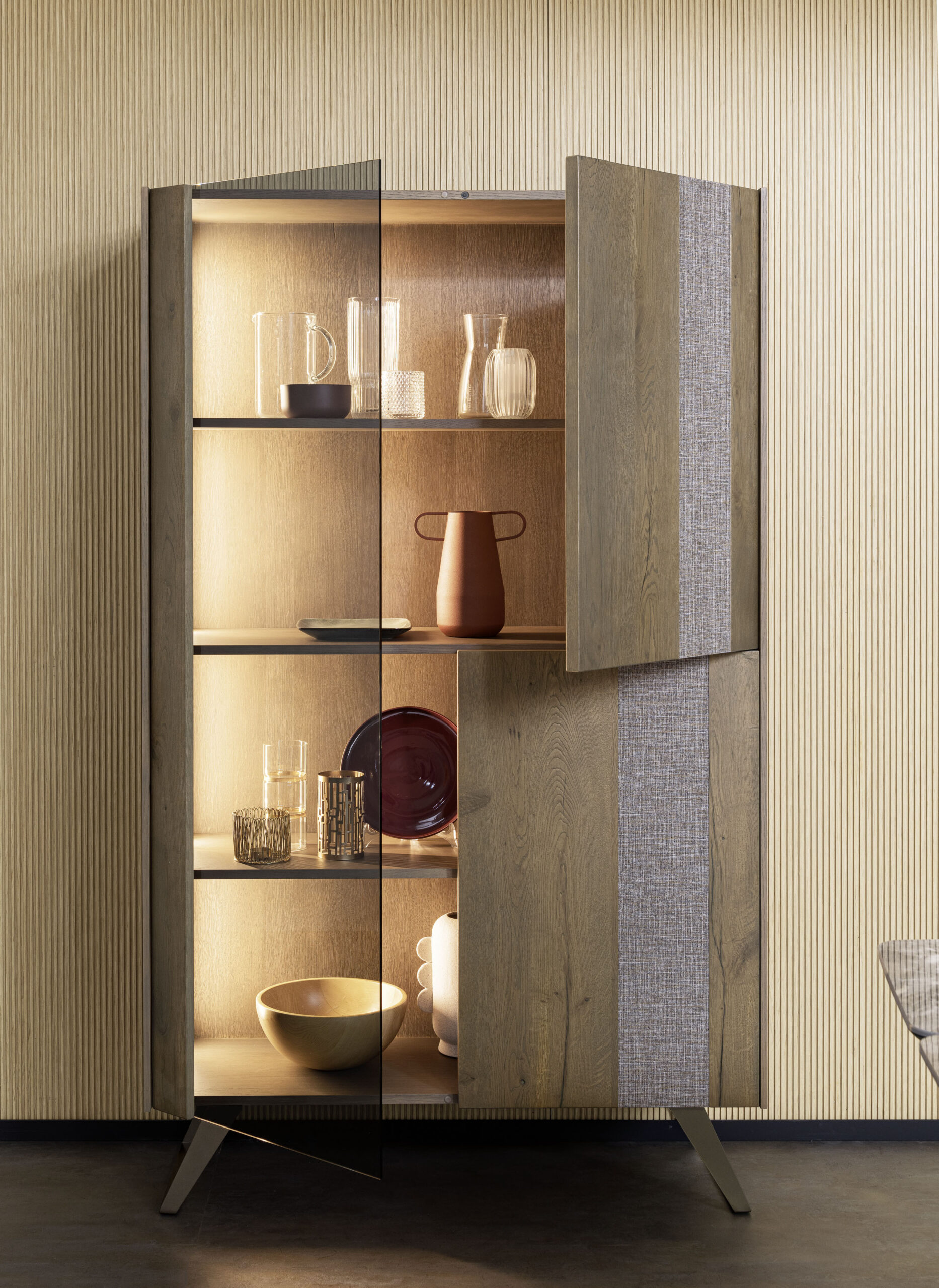 A designer showcase with a sure impact for your guests also thanks to the backlighting. Customizable in over 500 combinations of body, doors, brackets, inserts and tops, it ensures that each one is never the same as the other. How would you do it?
