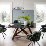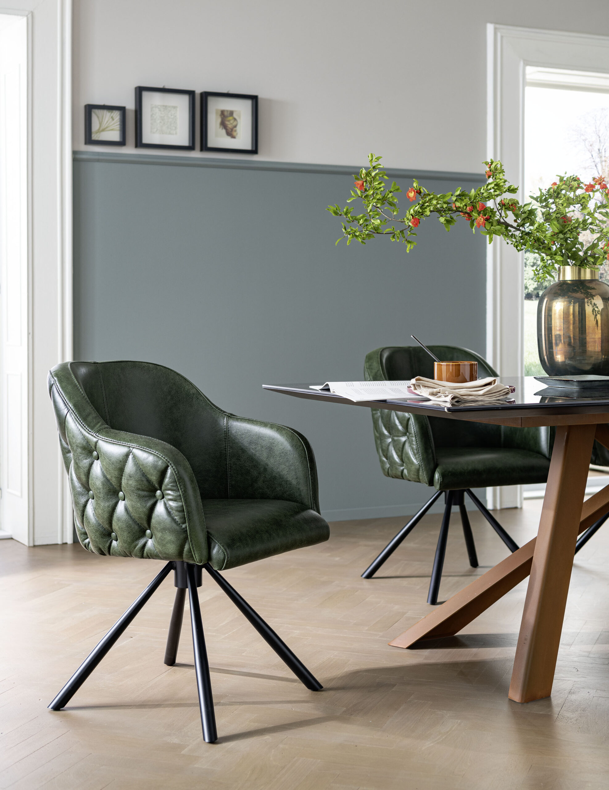 Estructura de roble, silla de terciopelo o microfibra.